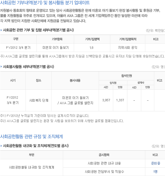 제목 FY2012 3분기 사회공헌 내역 등록일 2013-05-10